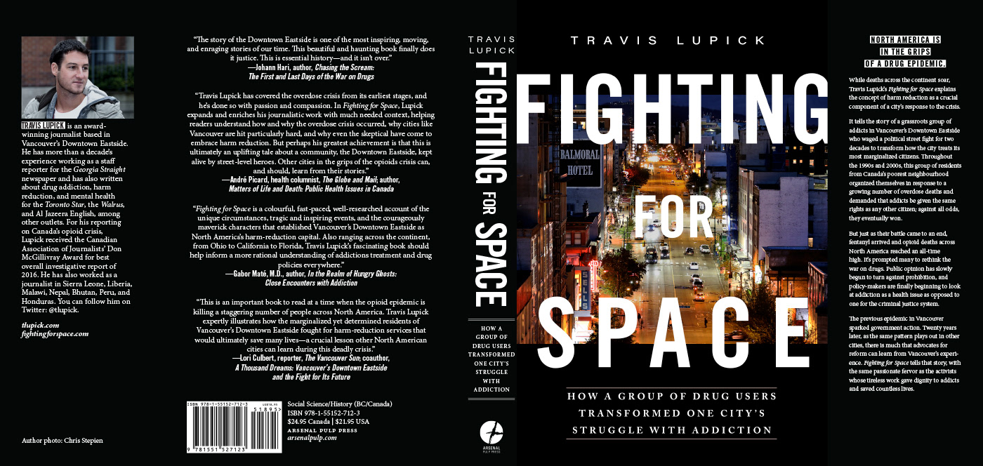 Cover design for Travis Lupick's acclaimed history of the opioid crisis in Vancouver's Downtown Eastside